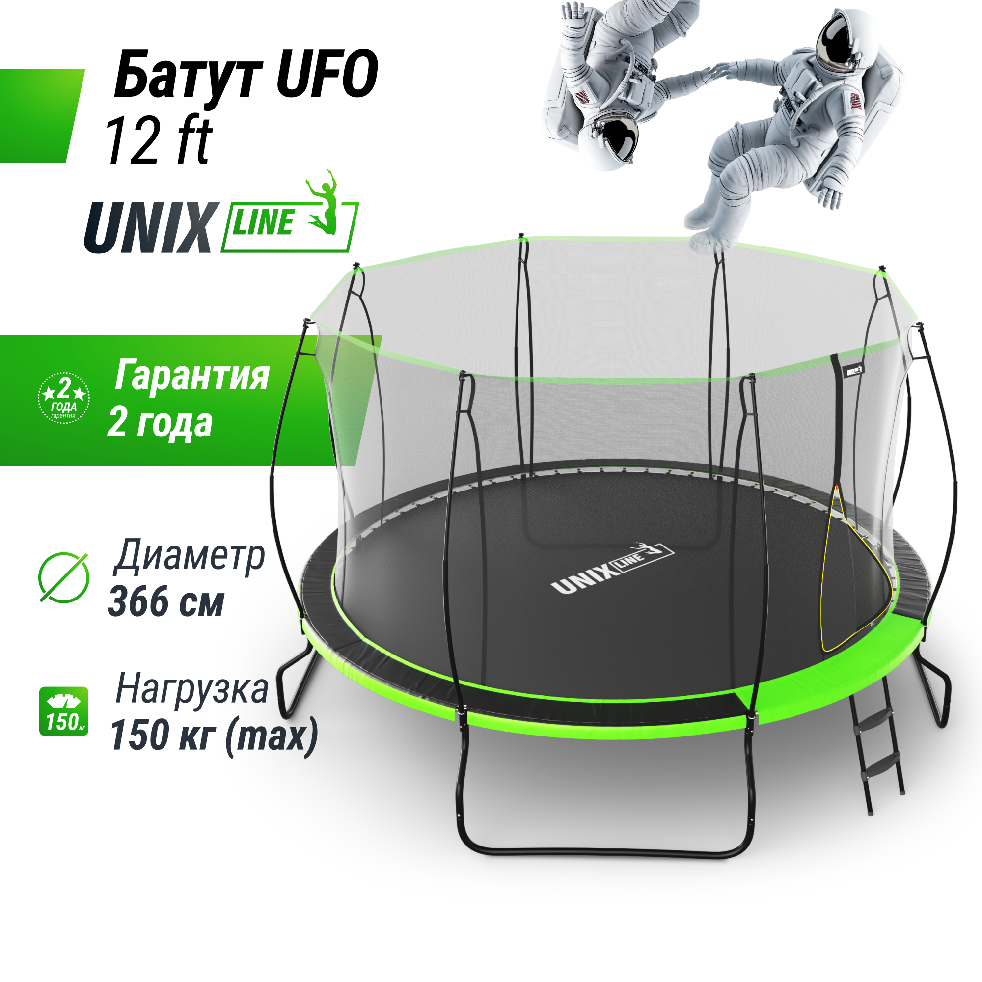 10 цен на Батут каркасный UNIX Line UFO 12 ft Green, диаметр 366 см, до 150 кг, с внутренней защитной сеткой, для дома и улицы, лестница в комплекте