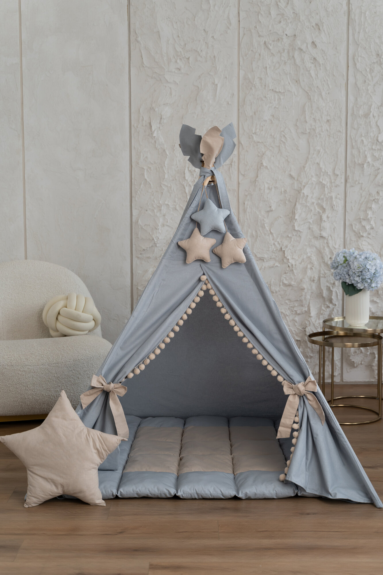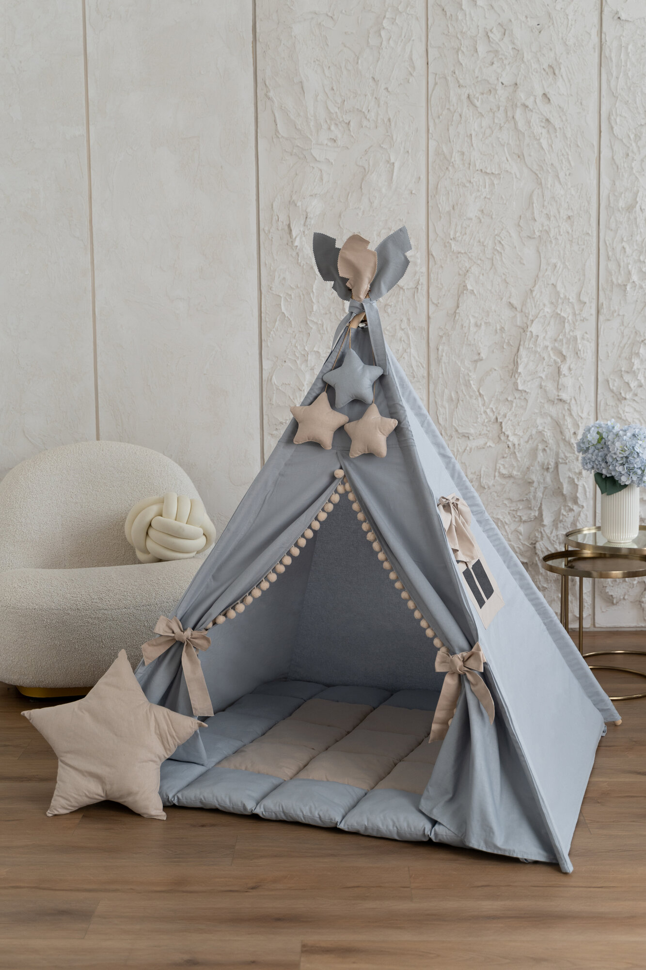 Детский вигвам с ковриком и окошком, для девочек и мальчиков от 1 до 9 лет светло-серый