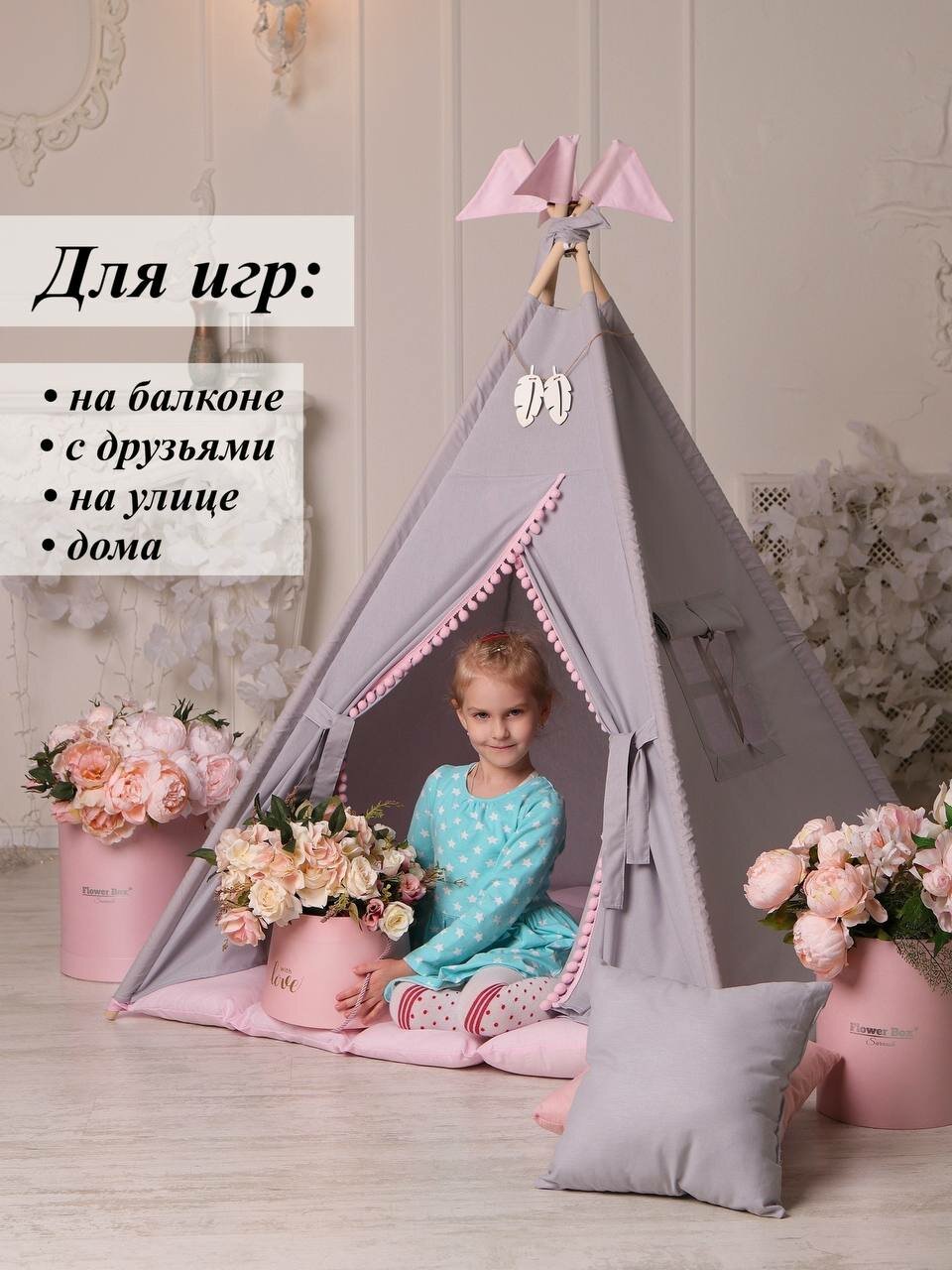 10 цен на Вигвам игровая палатка домик для детей Серо-Розовая