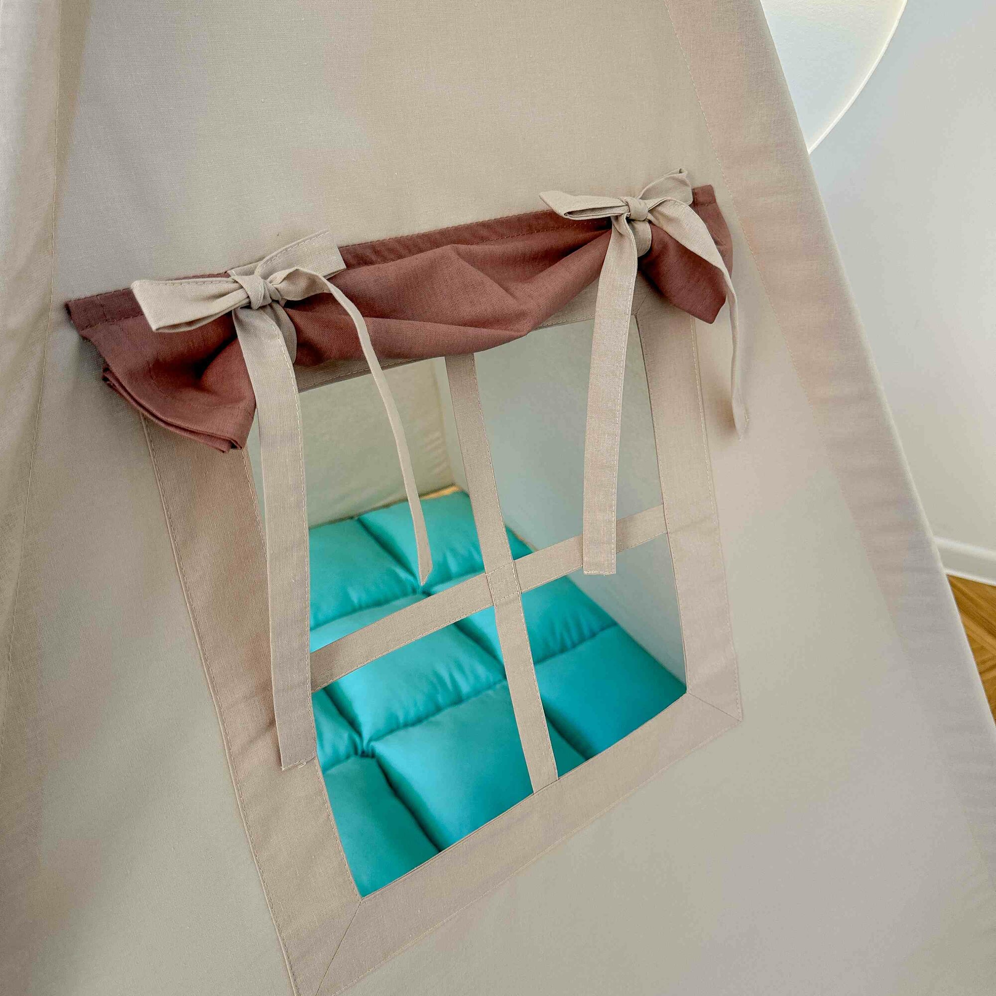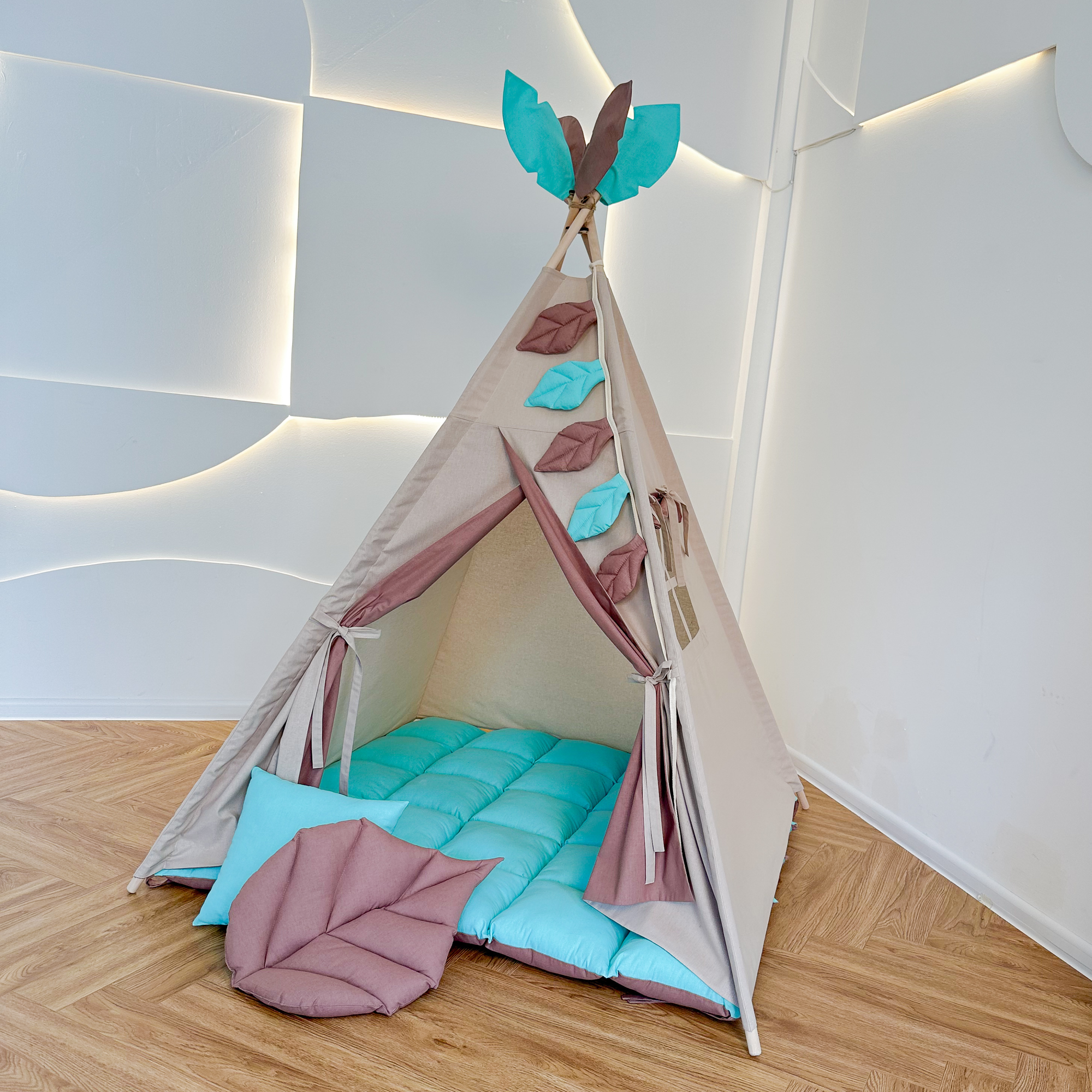Вигвам детский с пышным ковриком "Бежевый". Палатка игровая