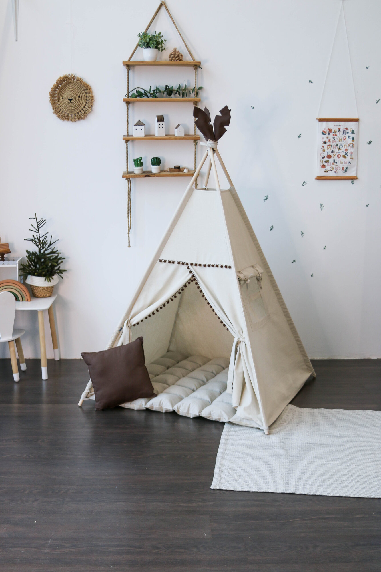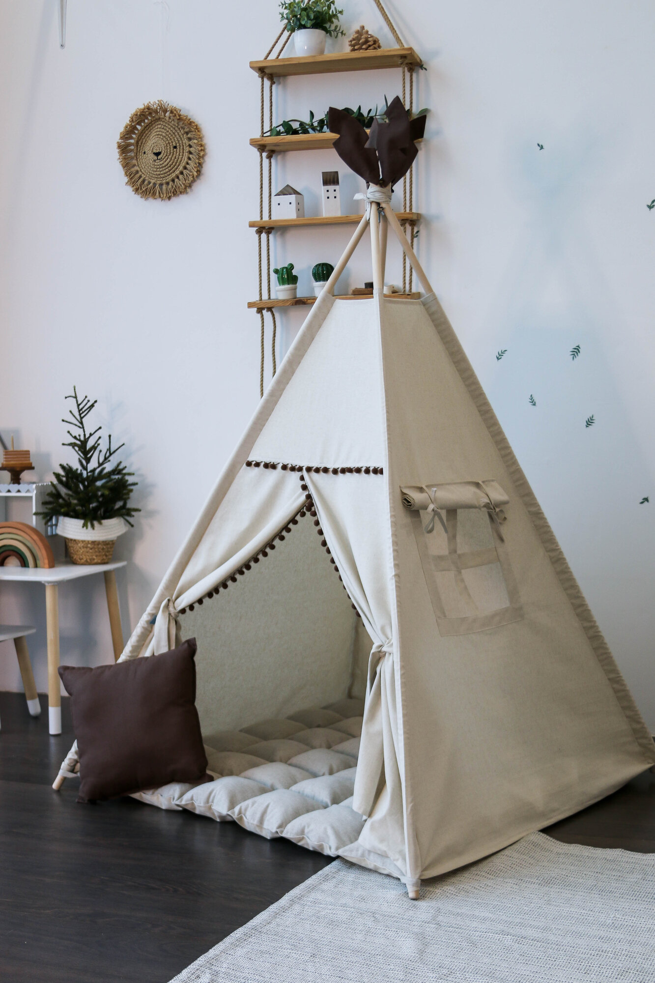 Детский игровой домик вигвам из льна с ковриком и подушкой информация: