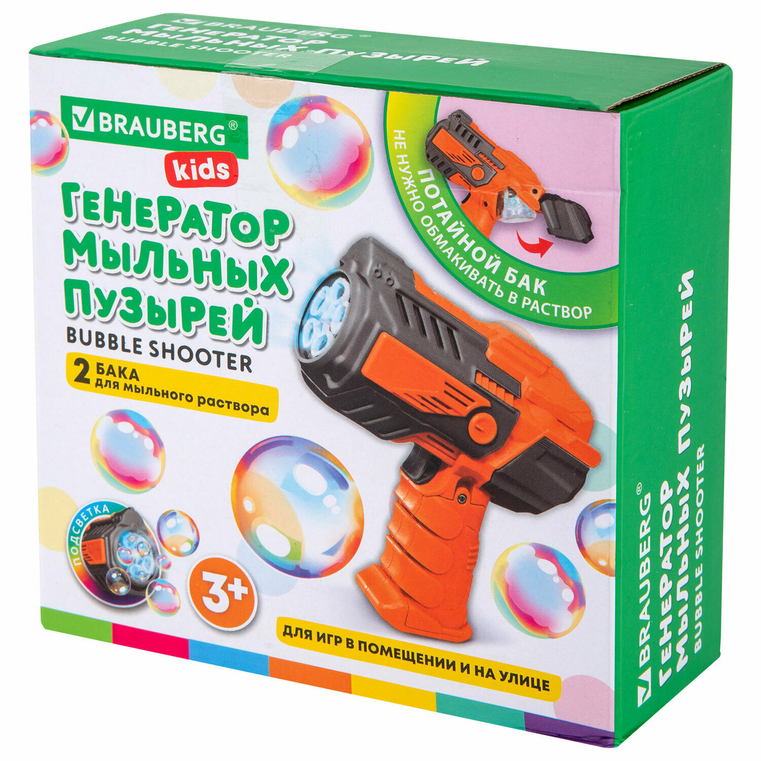 Мыльные пузыри Бластер Генератор с баком и подсветкой, раствор 80 мл, BRAUBERG KIDS, 665147