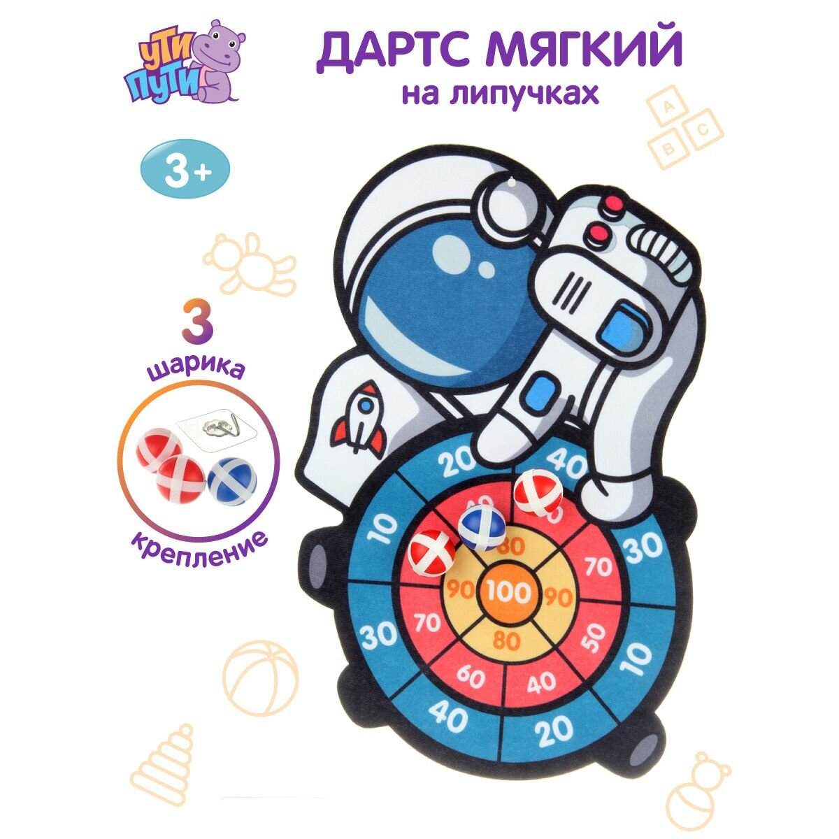 Детский мягкий дартс "Космонавт" на липучках, Ути Пути / Развивающая игра для малышей с мячиками информация: