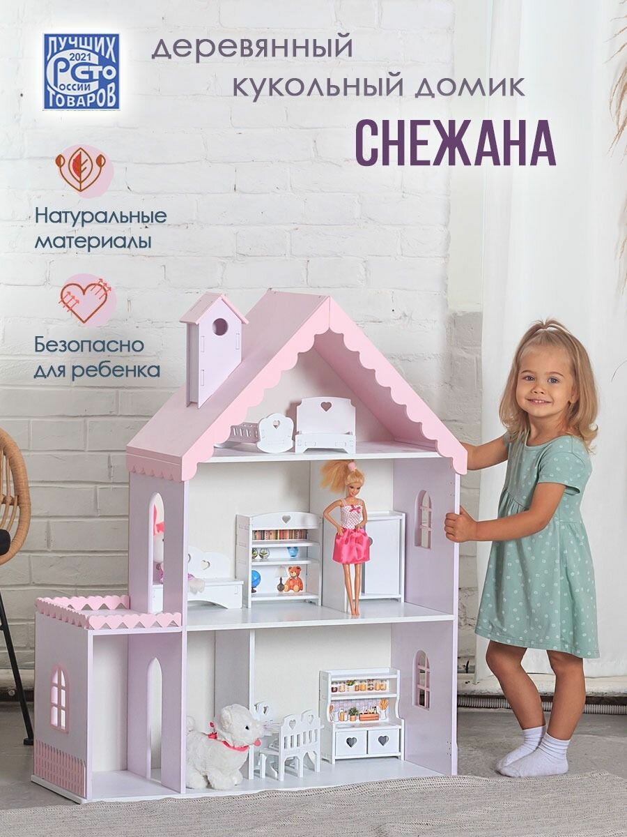 Отзывы на Кукольный домик деревянный Снежана для кукол до 32 см лилово-розовый