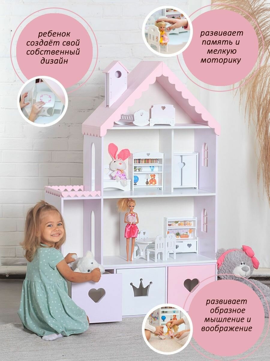 Кукольный домик деревянный Снежана для кукол до 32 см лилово-розовый информация: