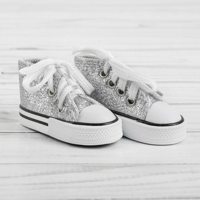 10 цен на Кеды для кукол «Блёстки», длина подошвы: 7,5 см, цвет серебряный