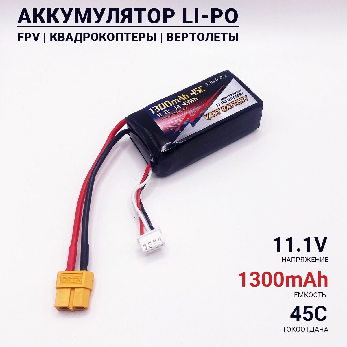10 цен на Аккумулятор VANT Li-Po 11.1V 1300mah 45C XT60