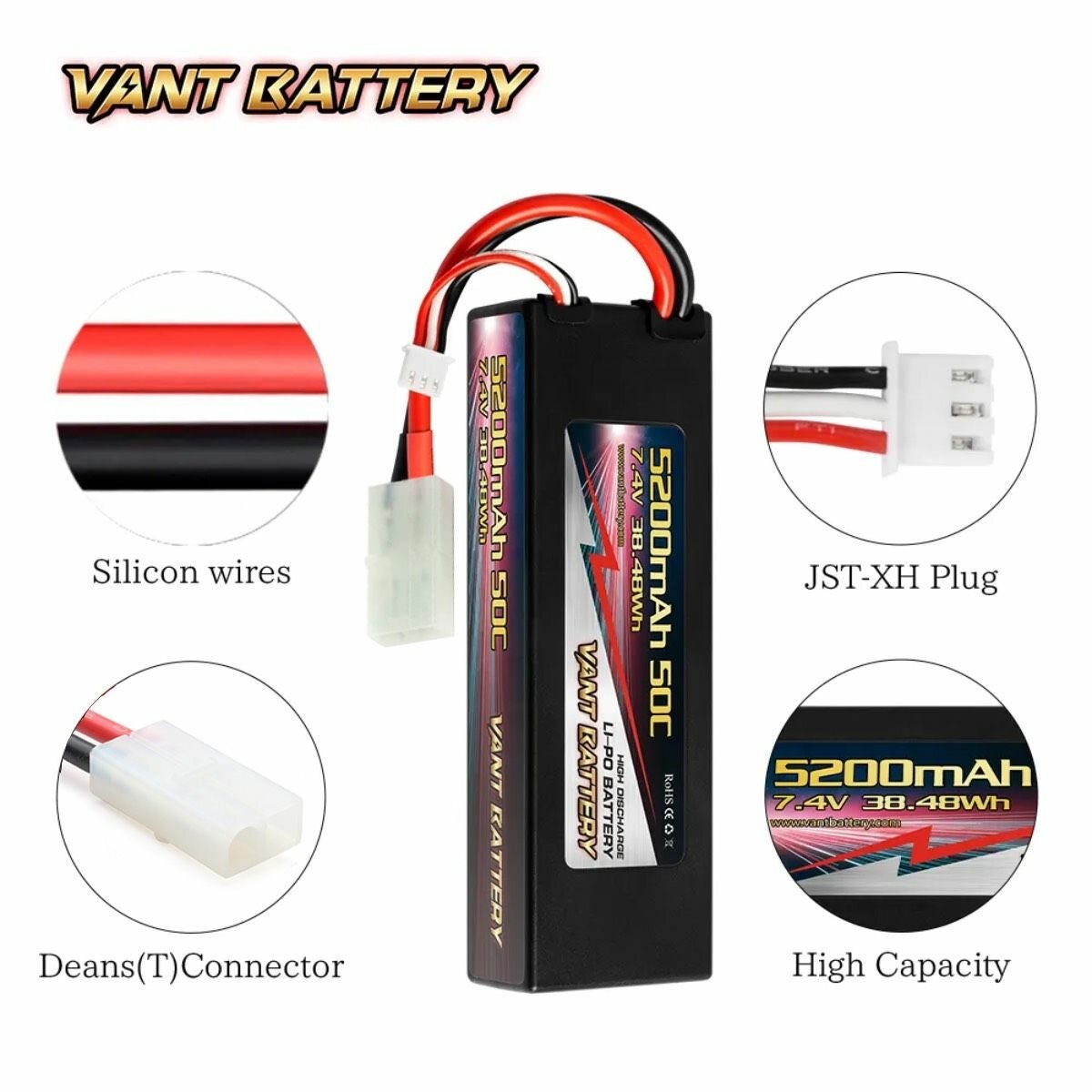 10 цен на Аккумулятор для радиоуправляемой машинки 7.4V Li-Po Vant 5200mah 50C разъем TAMIYA