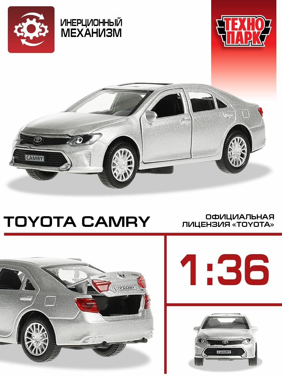 Машина металл TOYOTA CAMRY 12 см, двери, багаж, инерц. серебристый ,кор Технопарк в кор.2*36шт 784 ₽