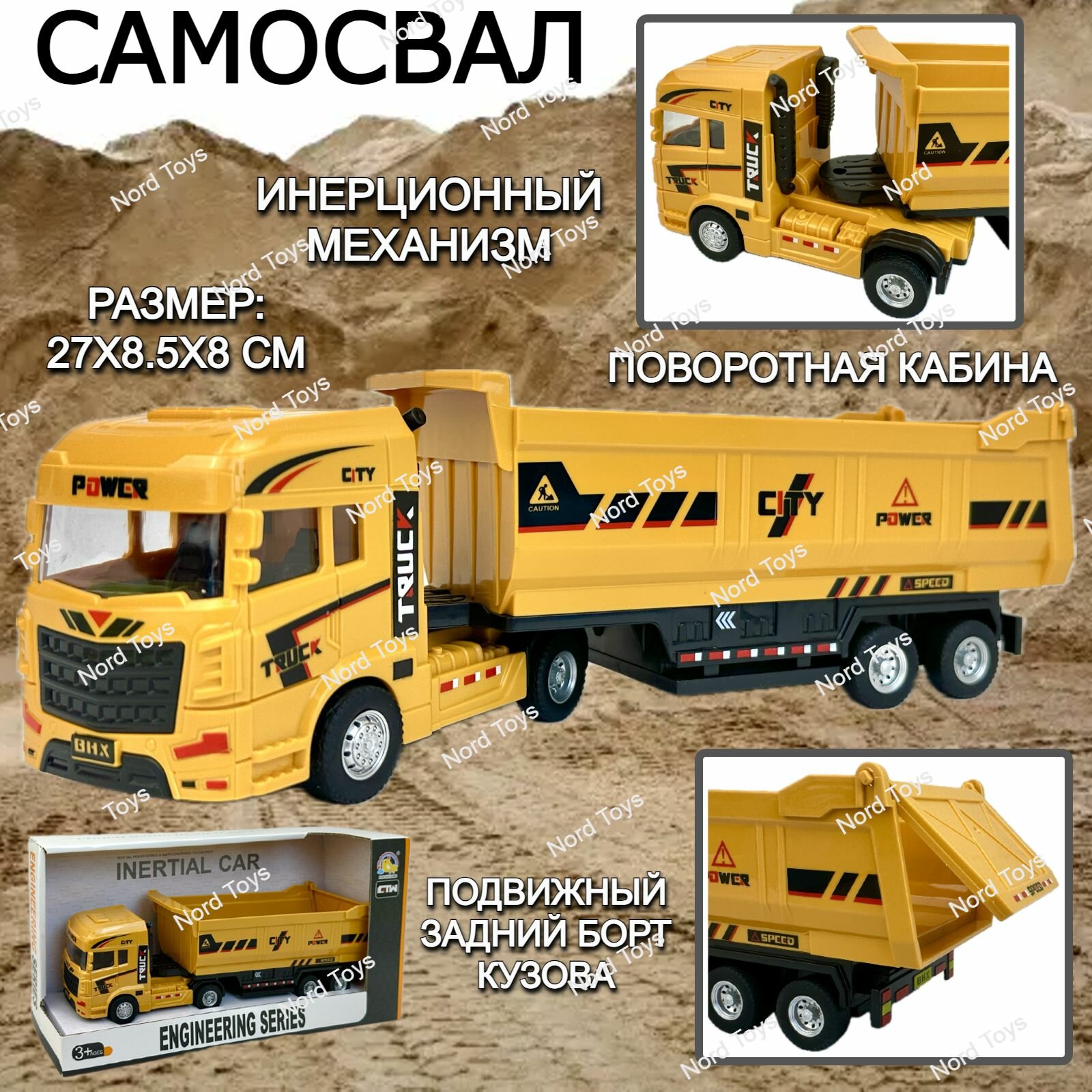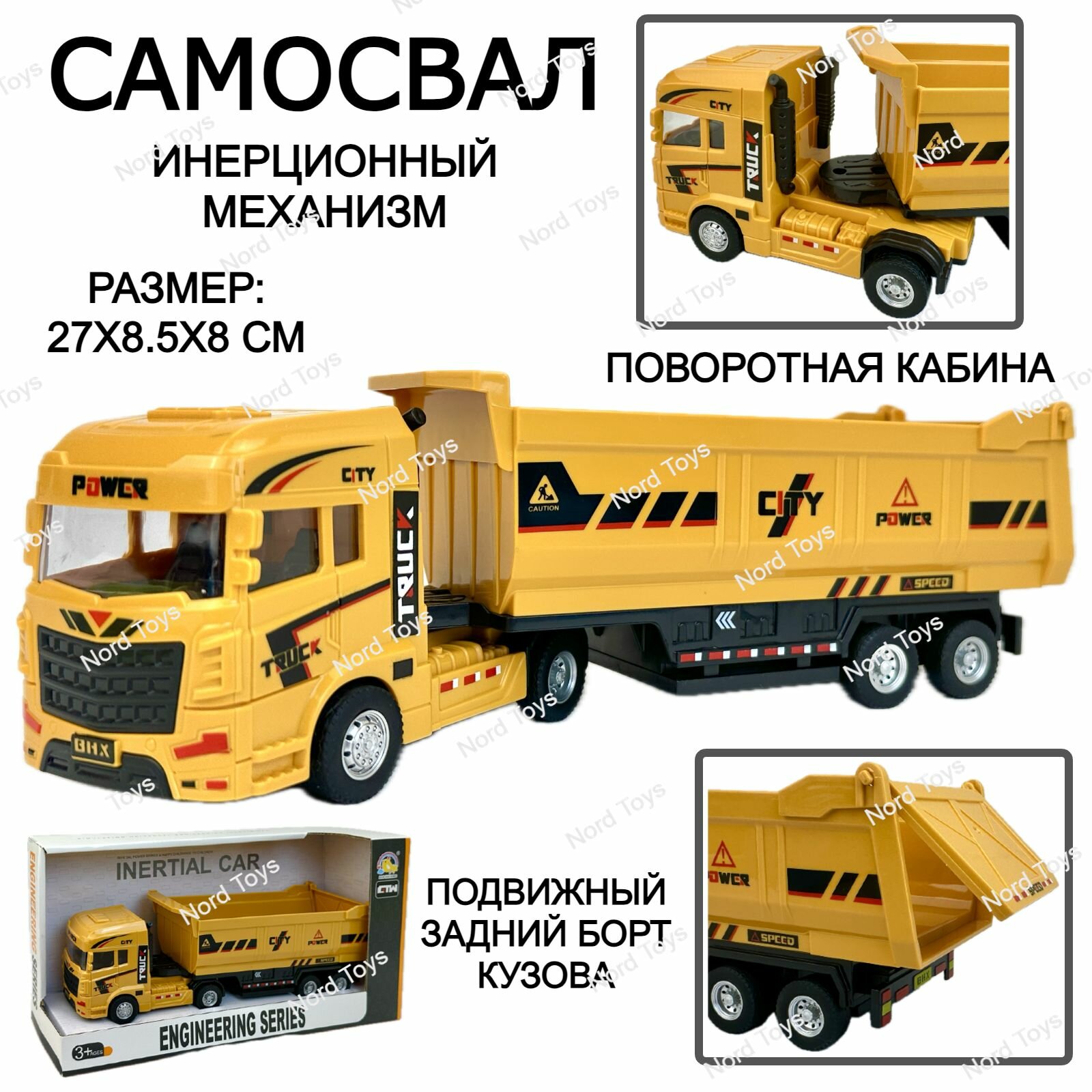 Инерционная машина самосвал Truck, поворотная кабина, подвижный борт кузова, 27х8х8 см информация: