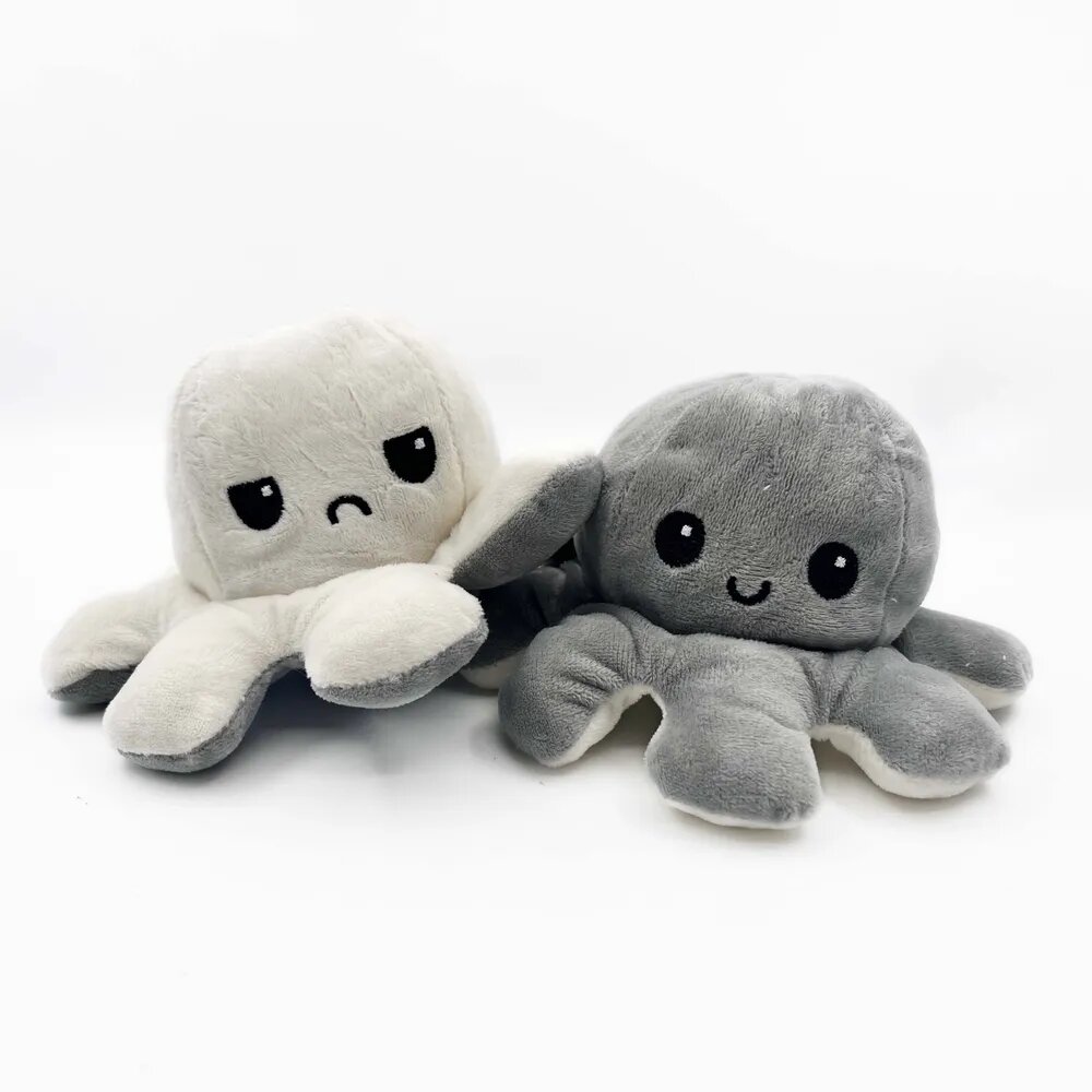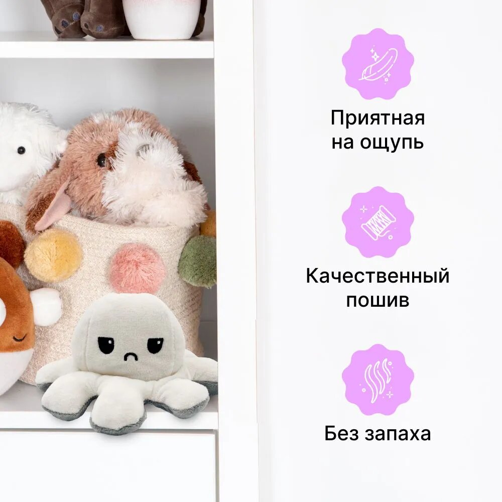 10 цен на Осьминог перевертыш мягкая игрушка двусторонняя, цвет: молочный и серый, 20 см