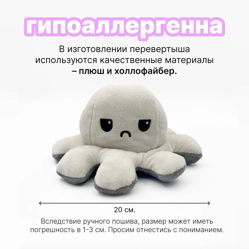 Осьминог перевертыш мягкая игрушка двусторонняя, цвет: молочный и серый, 20 см информация: