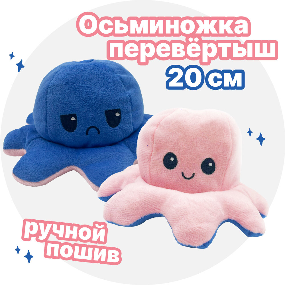 Осьминог перевертыш магкая игрушка двусторонняя, цвет: синий и розовый (20 см) информация: