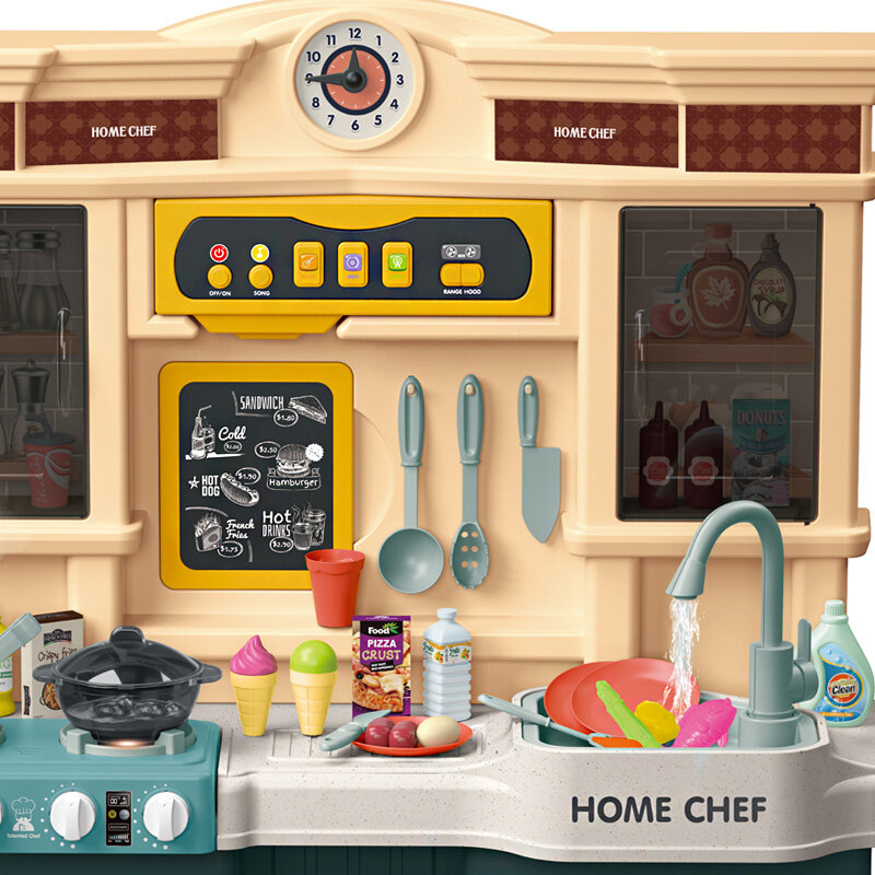 10 цен на Детская игровая кухня с двумя духовками и буфетом с паром, водой, звуками, 73 аксессуара (922-136)