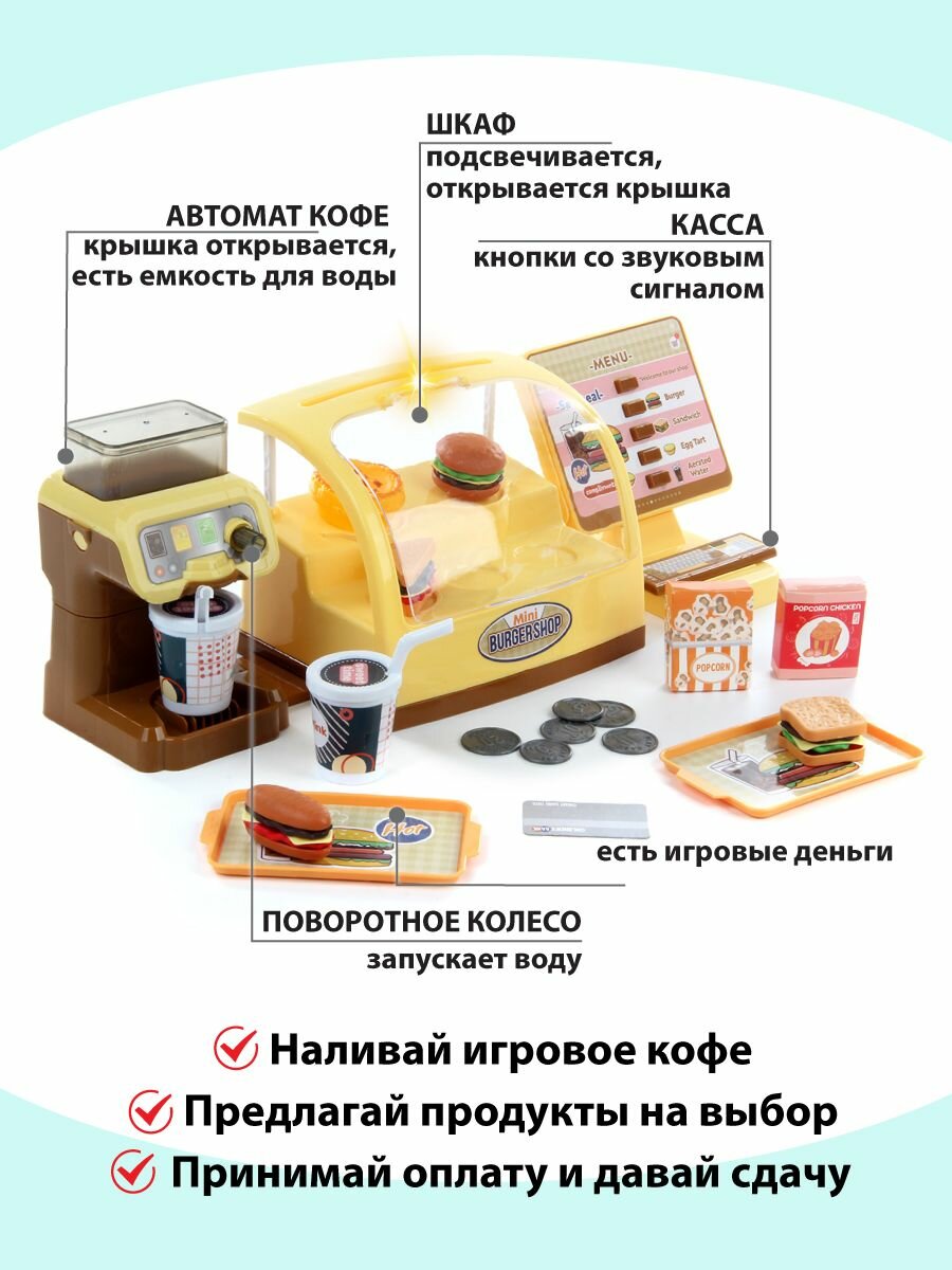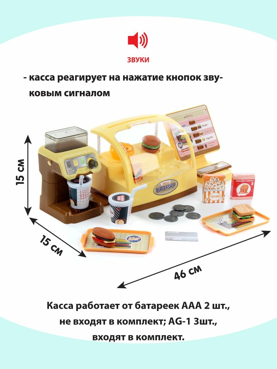 Детский игровой набор "Бургерная", Veld Co / Игрушечная касса со светом и звуком / Игрушки продукты для детей информация: