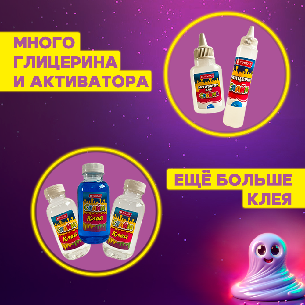 Большой набор для создания слайма, с воздушным пластилином, цветным клеем и не только информация: