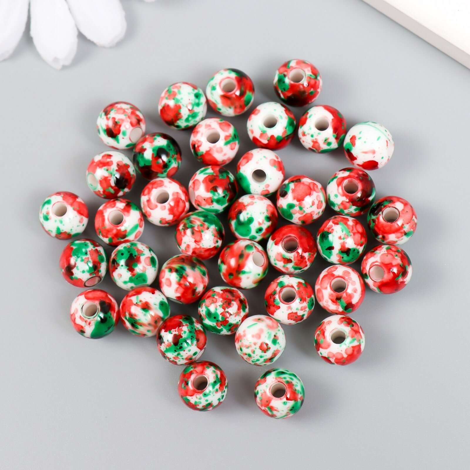 Бусины для творчества пластик "Брызги краски. Красный и зелёный" набор 20 гр 1х1 см