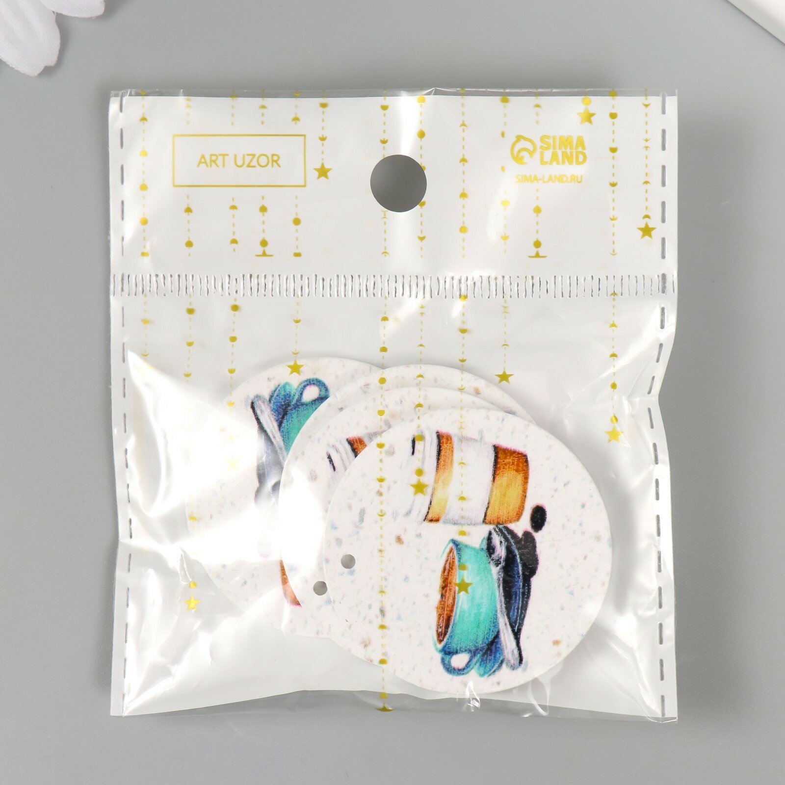 Декор для творчества дерево "Круг. Перерыв на кофе" d=4 см 4шт. информация: