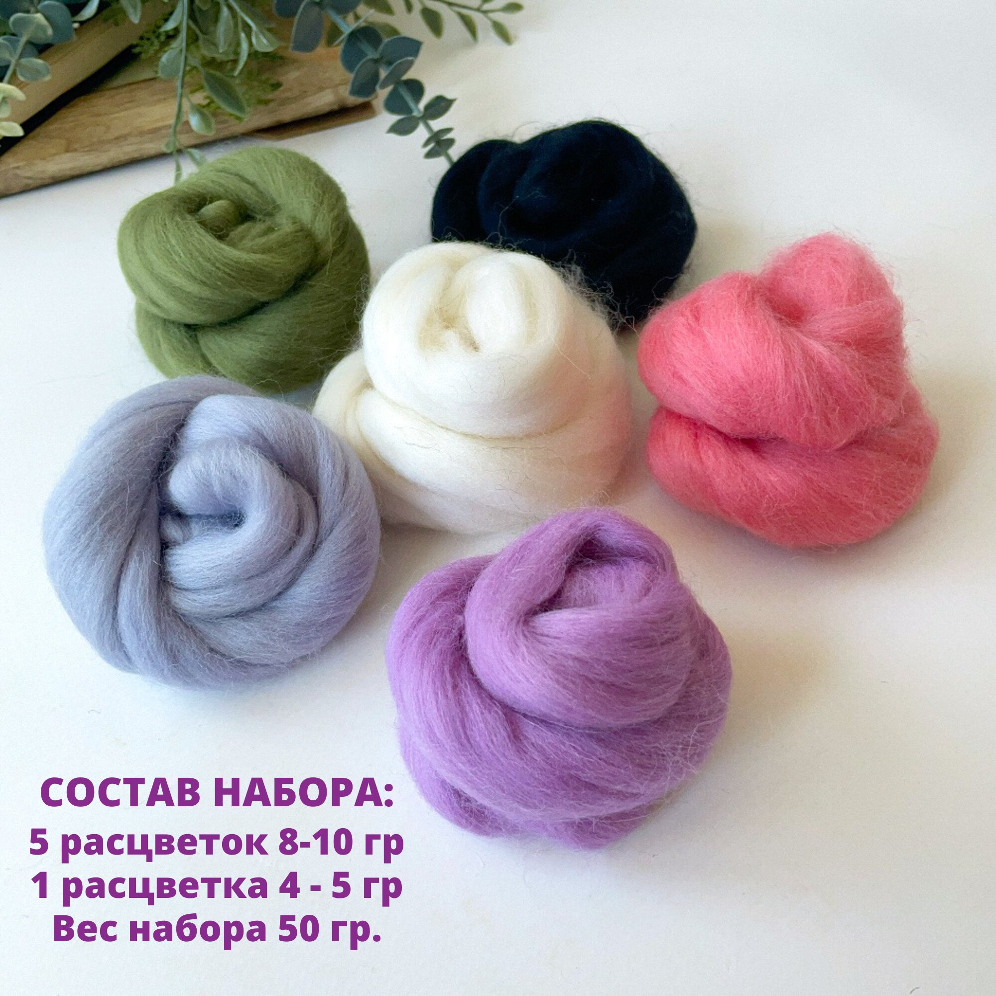 Отзывы на Шерсть для валяния, состав шерсть 100%, 50 гр., набор 6 цветов - нежные цвета