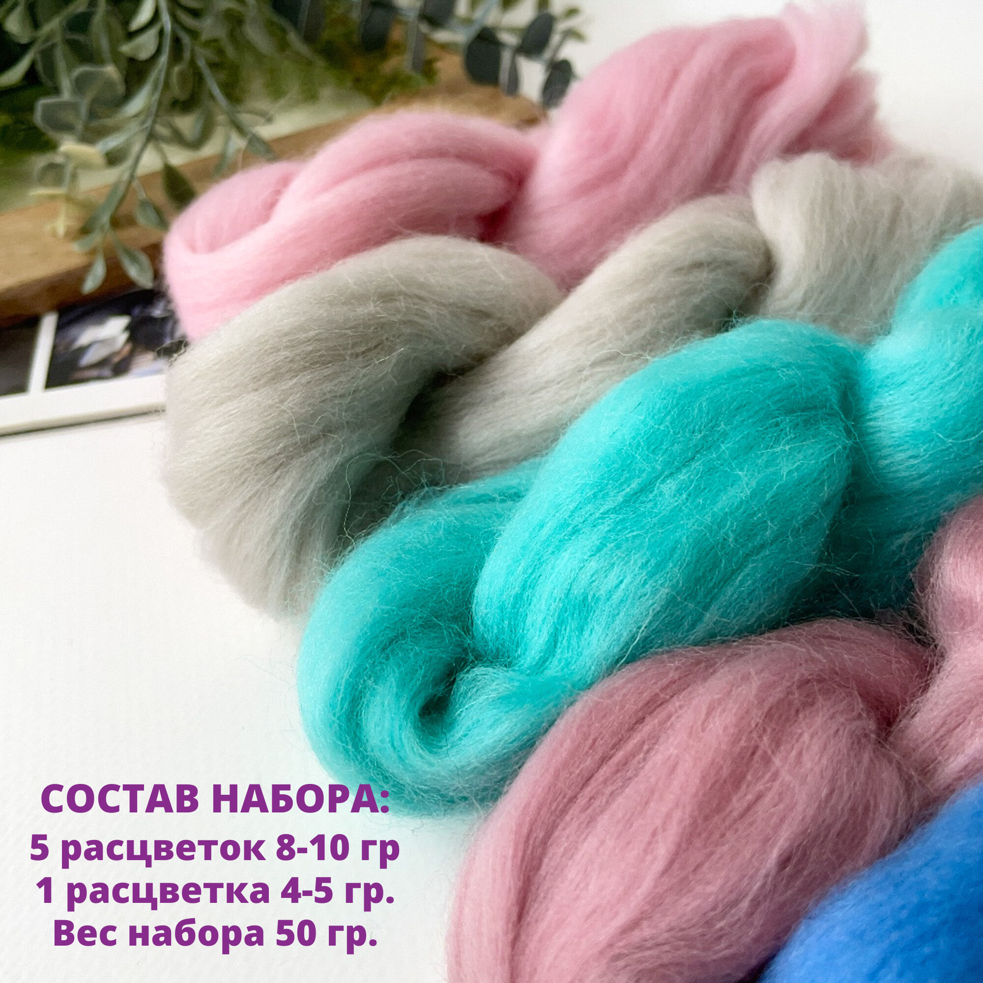 Шерсть для валяния, состав шерсть 100%, 50 гр., набор 6 цветов - нежные цвета 445 ₽
