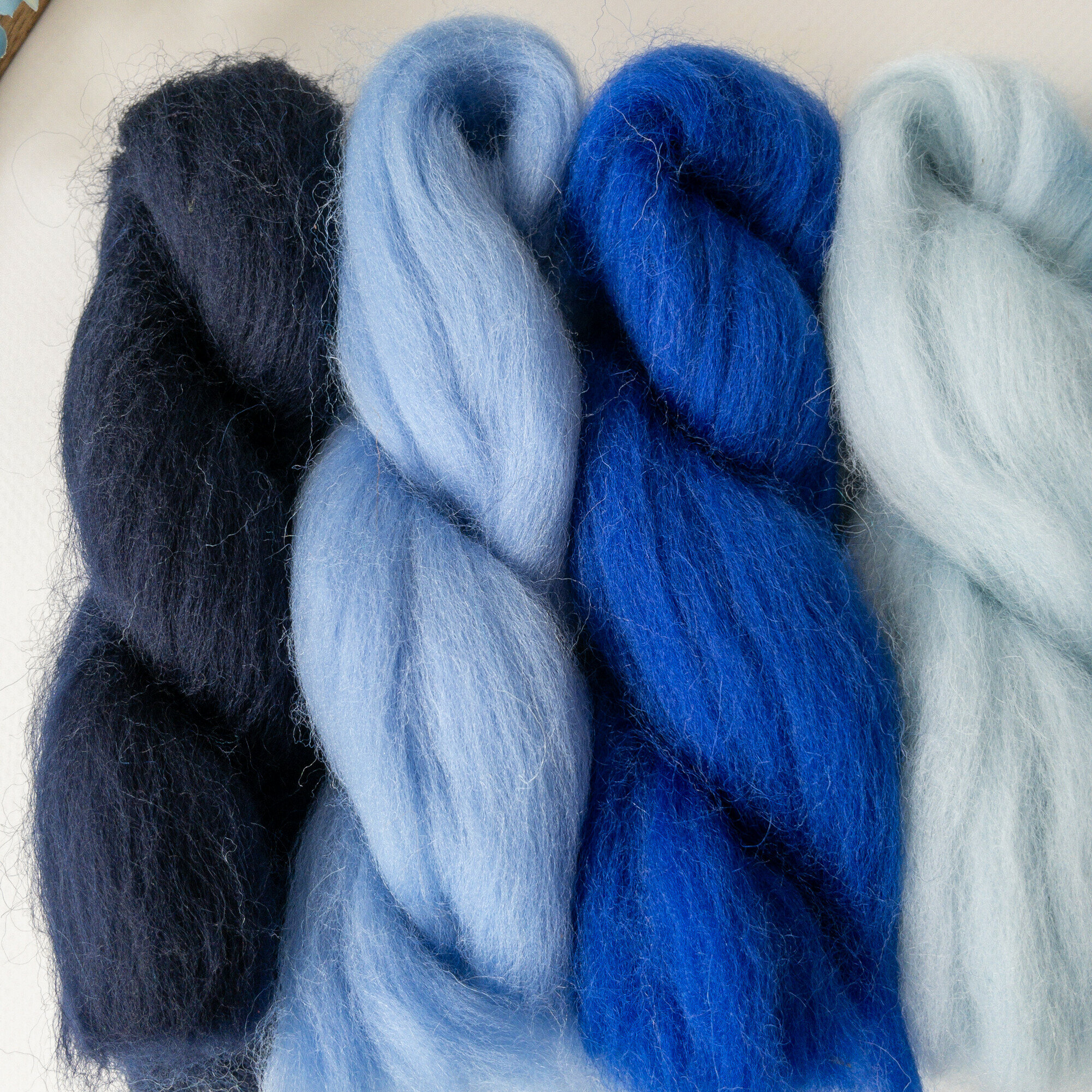 Отзывы на Шерсть для валяния, Синий микс, полутонкая шерсть 100 %, набор 5 цветов, 50 г