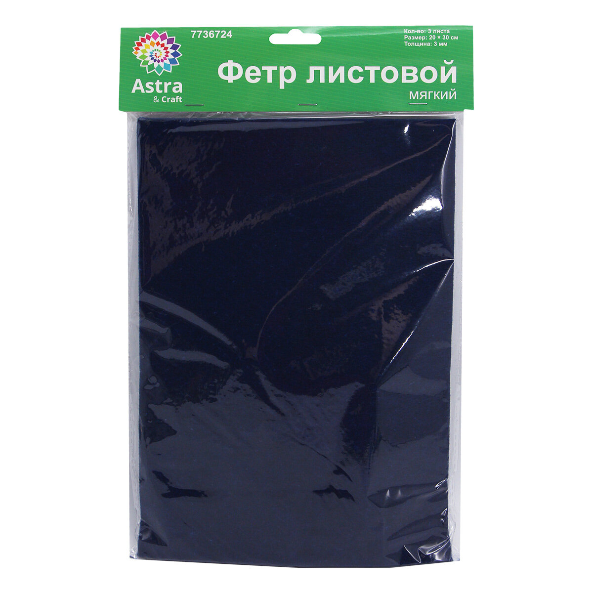 10 цен на ASTRA Набор мягкого фетра "Астра" (3 шт) тёмно-синий, 3 мм, 400 гр. 20х30 см