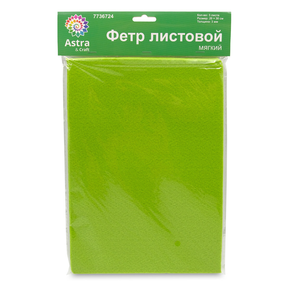 10 цен на Набор мягкого фетра "Астра" (3 шт) ярко-зелёный, 3 мм, 400 гр. 20х30 см