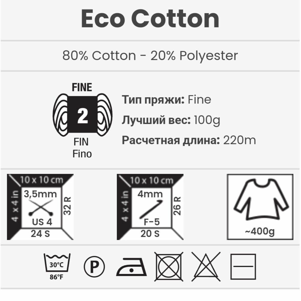 Пряжа YarnArt Eco cotton Розовый (766) 2 мотка 100 г/220 м (80% хлопок 20% полиэстер) ярнарт эко коттон информация: