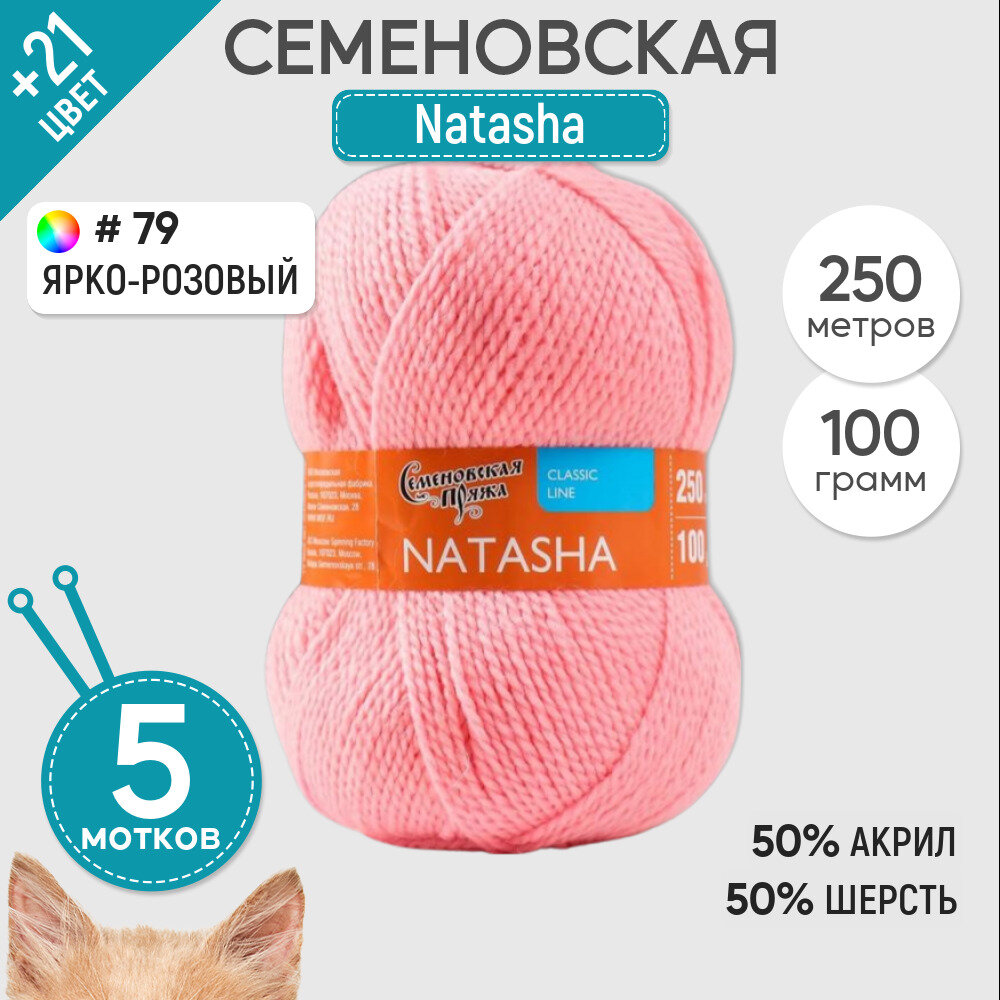 Нитки для вязания Семеновская пряжа (Natasha) Наташа 5 шт, полушерсть, ярко-розовый №79 информация: