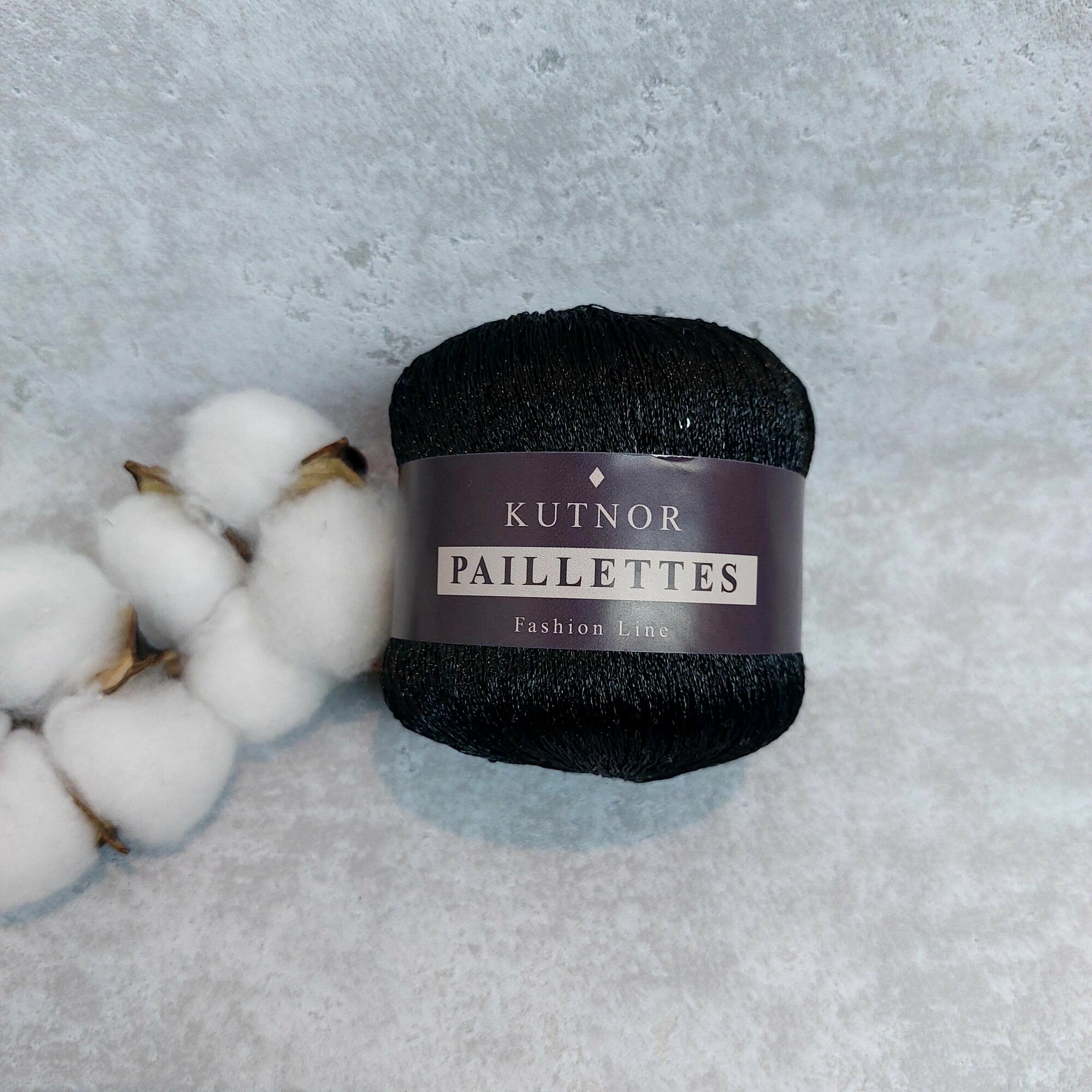 Отзывы на Пряжа для вязания Kutnor Paillettes, 2 мотка, Цвет: Черный (Черные пайетки) (49),100% полиамид, 50гр. 360м.