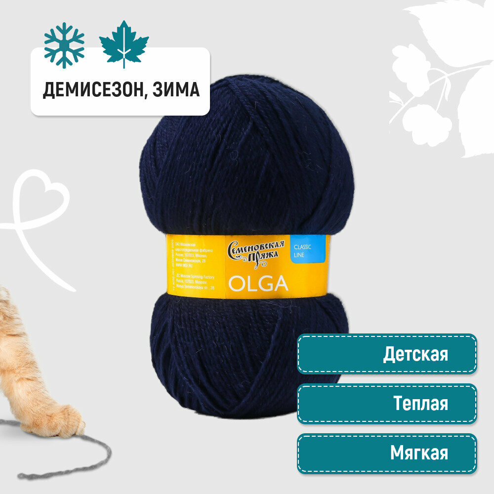 Пряжа для вязания Семеновская пряжа (Olga) Ольга, акрил и шерсть, синяя 5 шт. цвет 12145 информация: