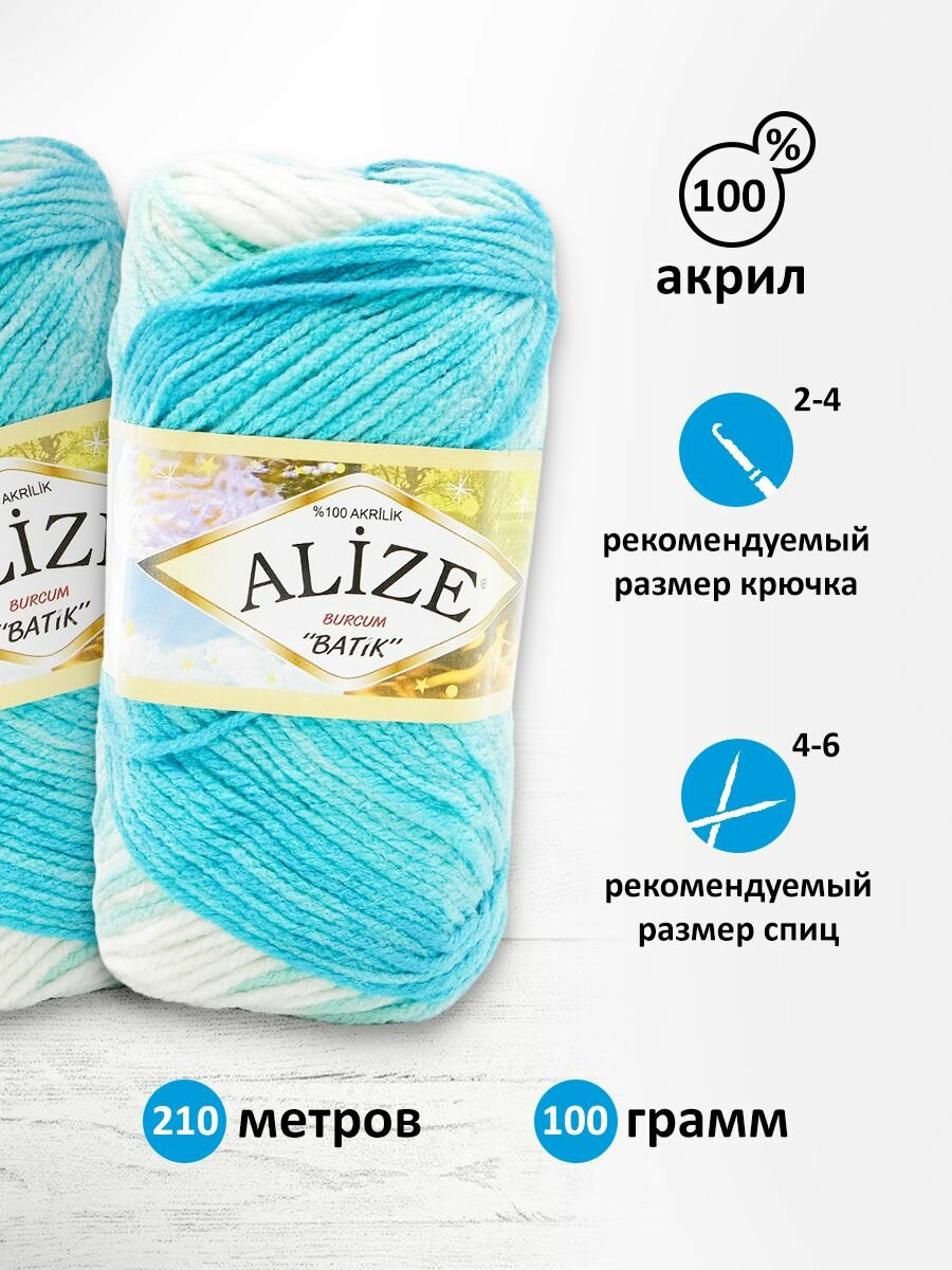 Пряжа Alize Burcum Batik белый-серый-бирюзовый (4200), 100%акрил, 210м, 100г, 2шт