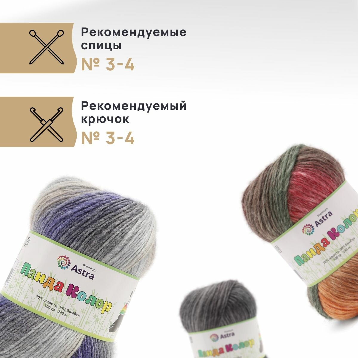 Пряжа для вязания Astra Premium 'Панда Колор' (Panda Color) 100г, 240м (70% шерсть, 30% бамбук) (06 секционный), 3 мотка информация: