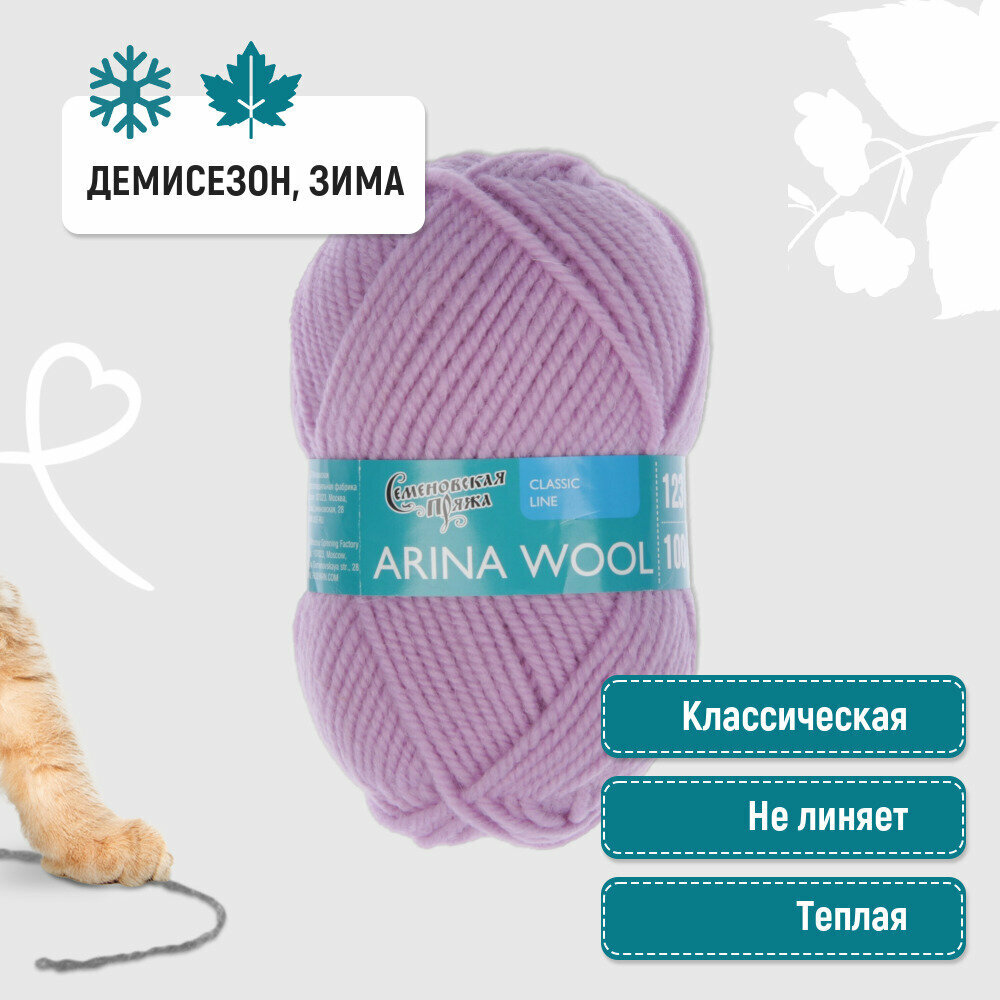 Пряжа Семеновская Arina Wool АринаЧШ, 95% шерсть 5% акрил, астра_v2, 1 шт*100гр/123м 417 ₽