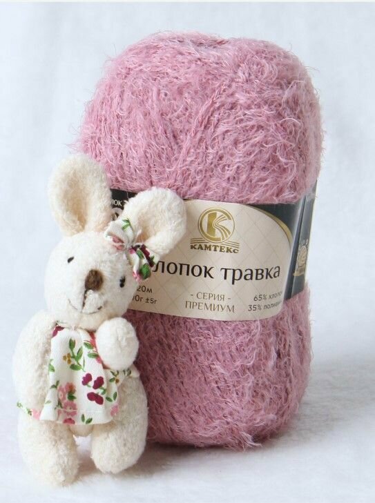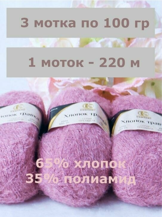 Пряжа Хлопок травка от Камтекс, цвет Сухая роза, 3 шт*100 г/220 м 900 ₽