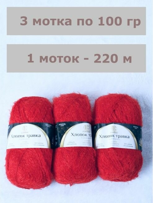 Пряжа Хлопок травка от Камтекс, цвет Красный 046, 3 шт*100 г/220 м информация: