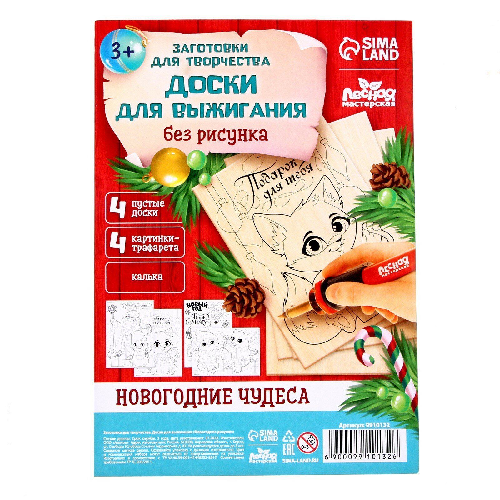 10 цен на Новогодние доски для выжигания «Новый год! Рисунки» 1шт.