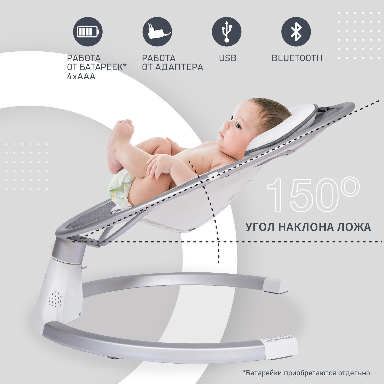 Электрокачели для новорожденного кресло качалка новогодние подарки, для малыша до 12 кг, с пультом управления, серый