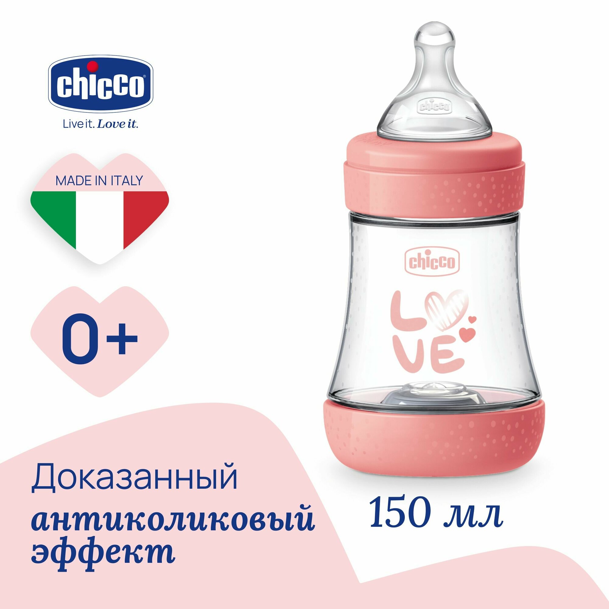10 цен на Бутылочка для кормления для новорожденных CHICCO Perfect5 Girl 0мес.+,силиконовая соска медленный поток,РР,150мл. NEW