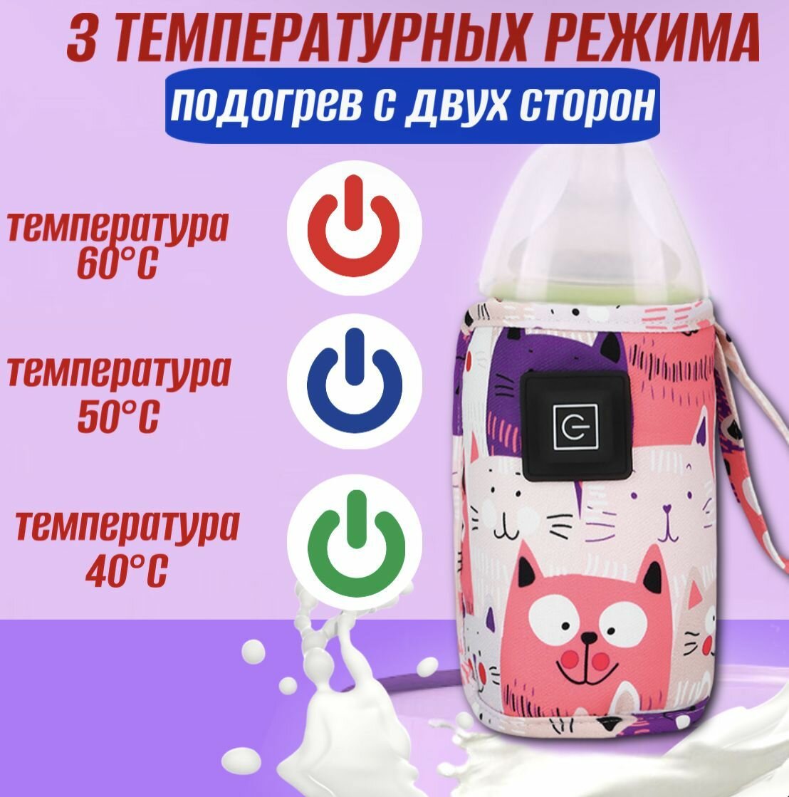 Чехол подогреватель для бутылочки USB, портативный, розовый кот информация: