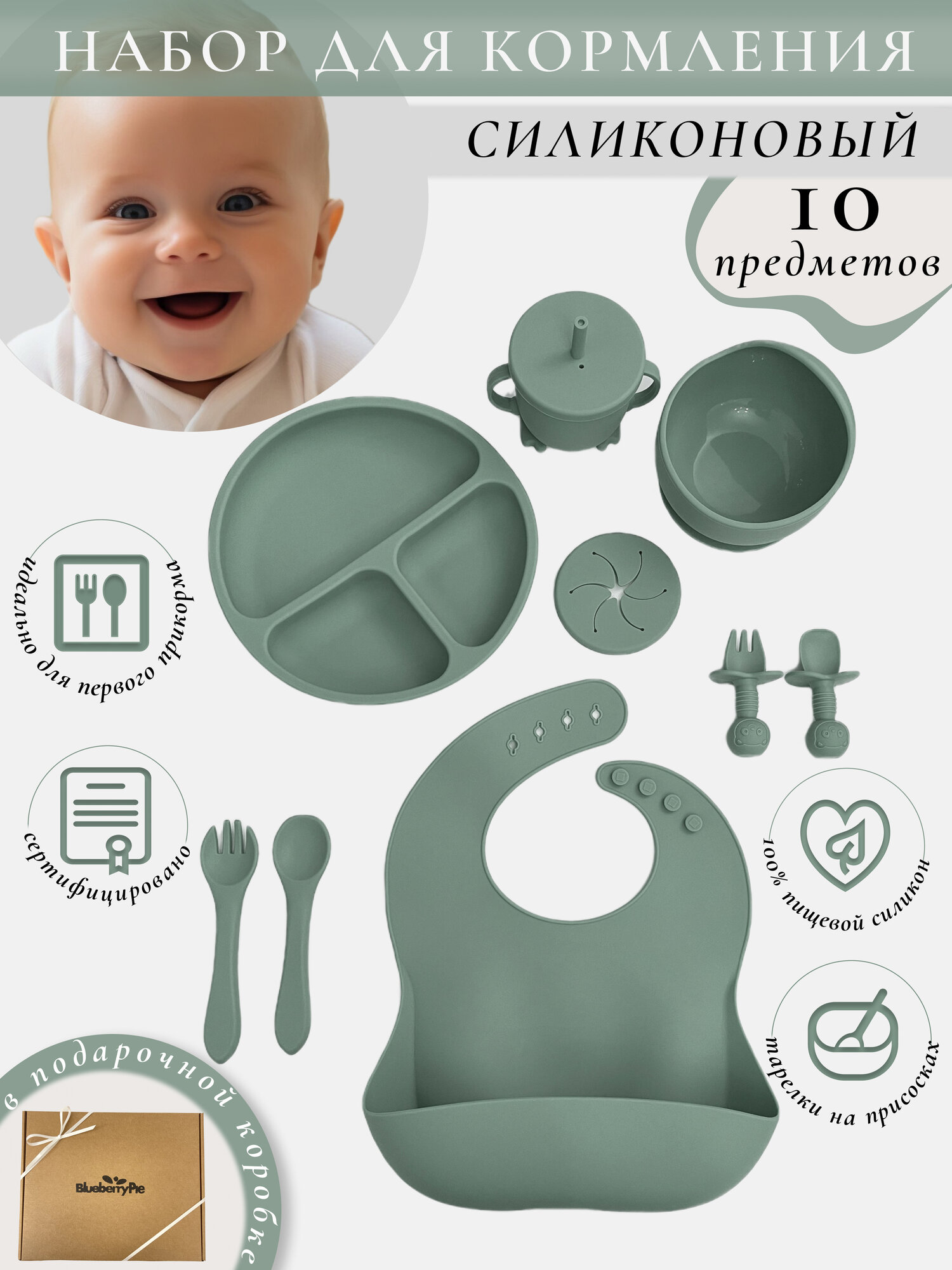 Набор "BlueberryPie" для кормления малышей зелёный информация: