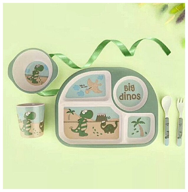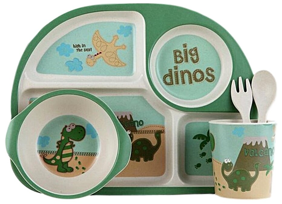 10 цен на Набор детской посуды из бамбукового волокна Дино, в подарочной коробке, 5 предметов