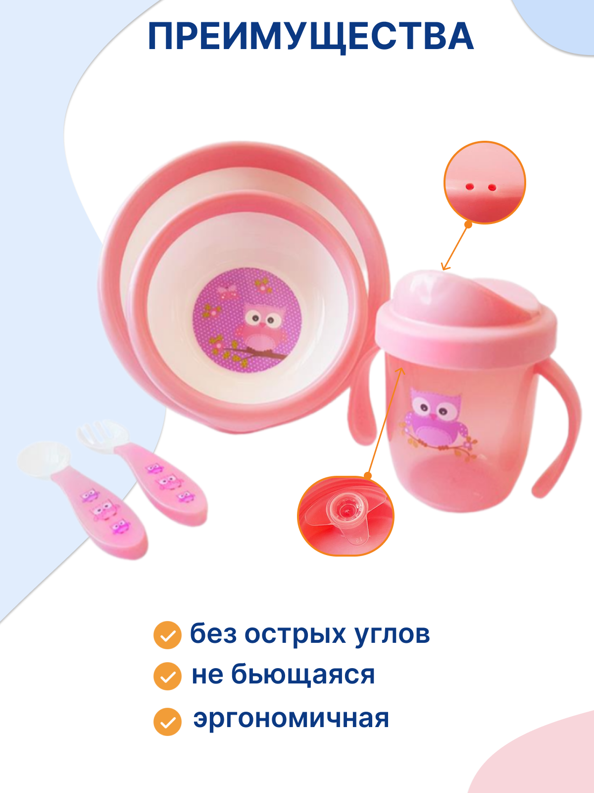 Набор детской посуды для кормления (тарелки, ложка, вилка и поильник для детей) информация: