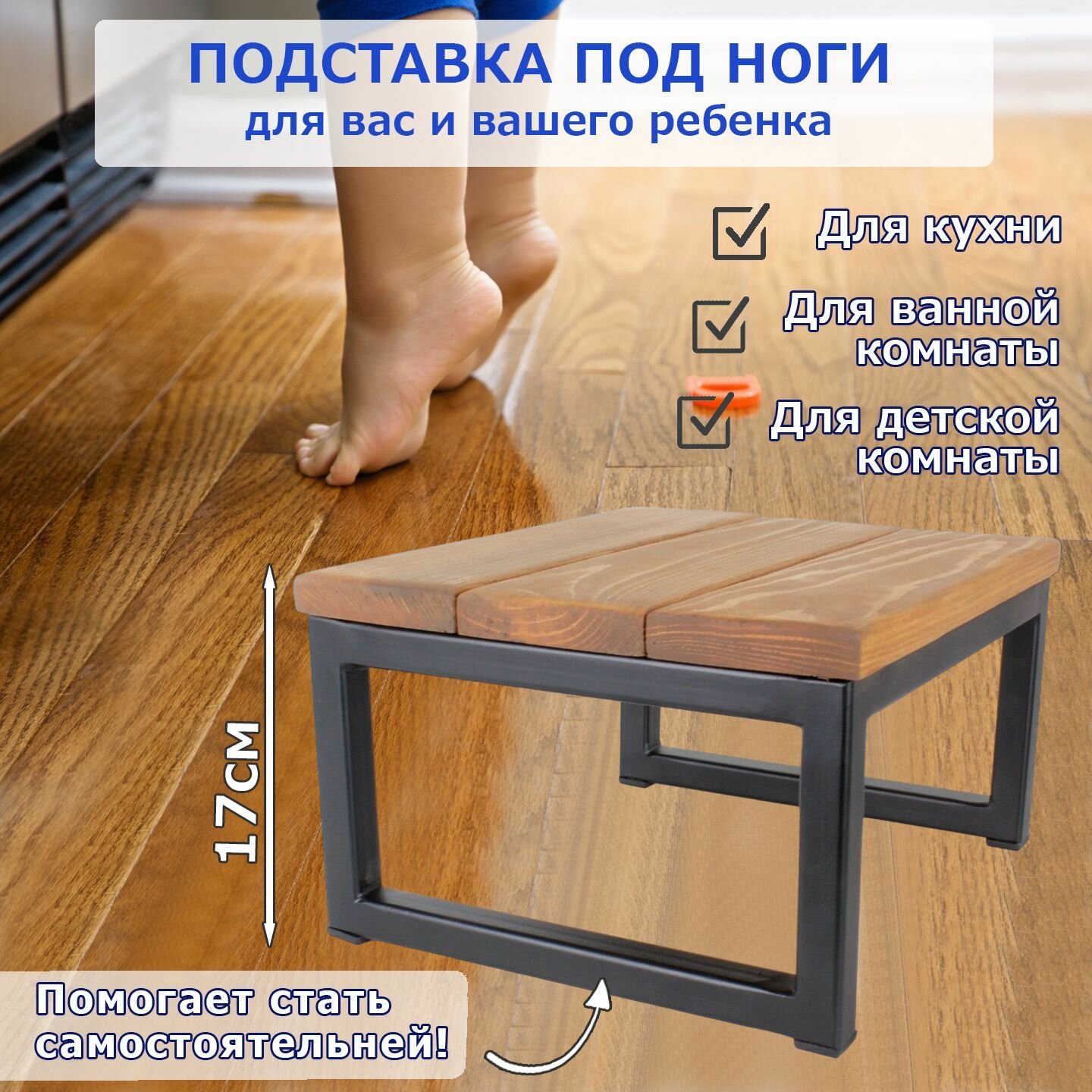 Отзывы на Подставка- скамейка под ноги / табурет, металлический каркас, сиденье массив дерева. Размер 300х260х170 мм