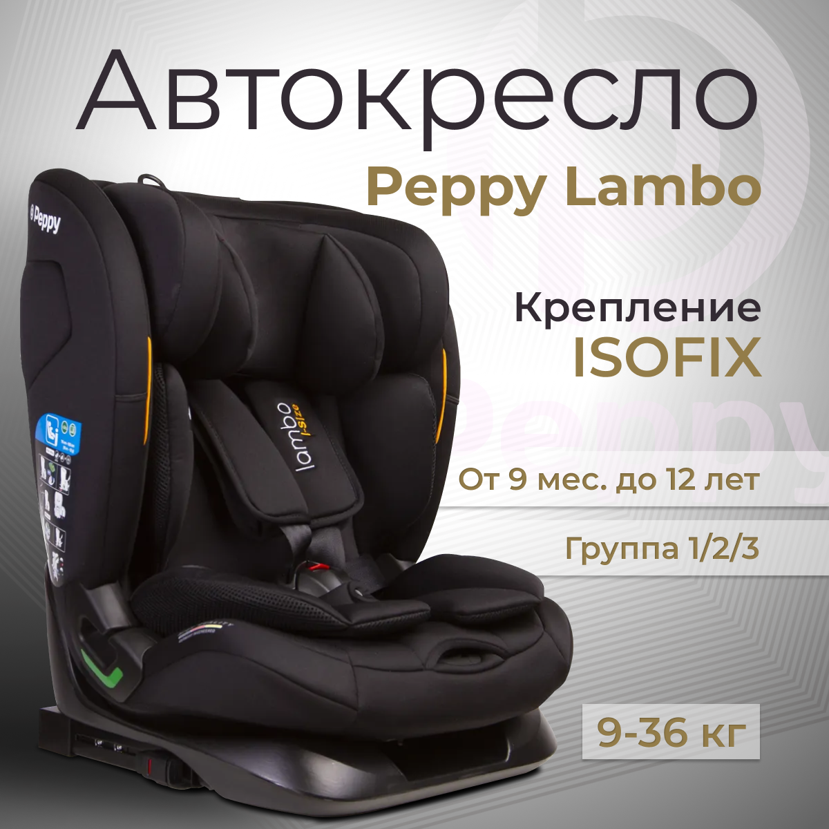 Автокресло Peppy Lambo i-Size (модель WD025), группа 1/2/3, 9-36 кг, 76-150 см, Black информация: