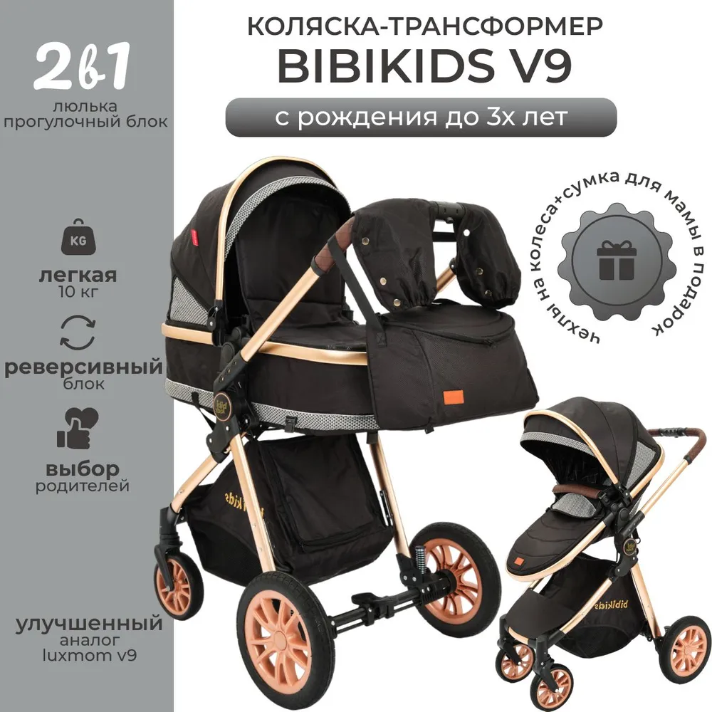 Отзывы на Коляска 2 в 1 для новорожденных трансформер BIBIKIDS V9 (LUXMOM) NEW Чёрная