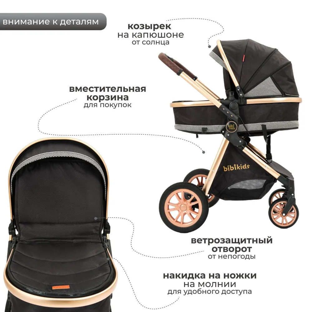 Коляска 2 в 1 для новорожденных трансформер BIBIKIDS V9 (LUXMOM) NEW Чёрная информация: