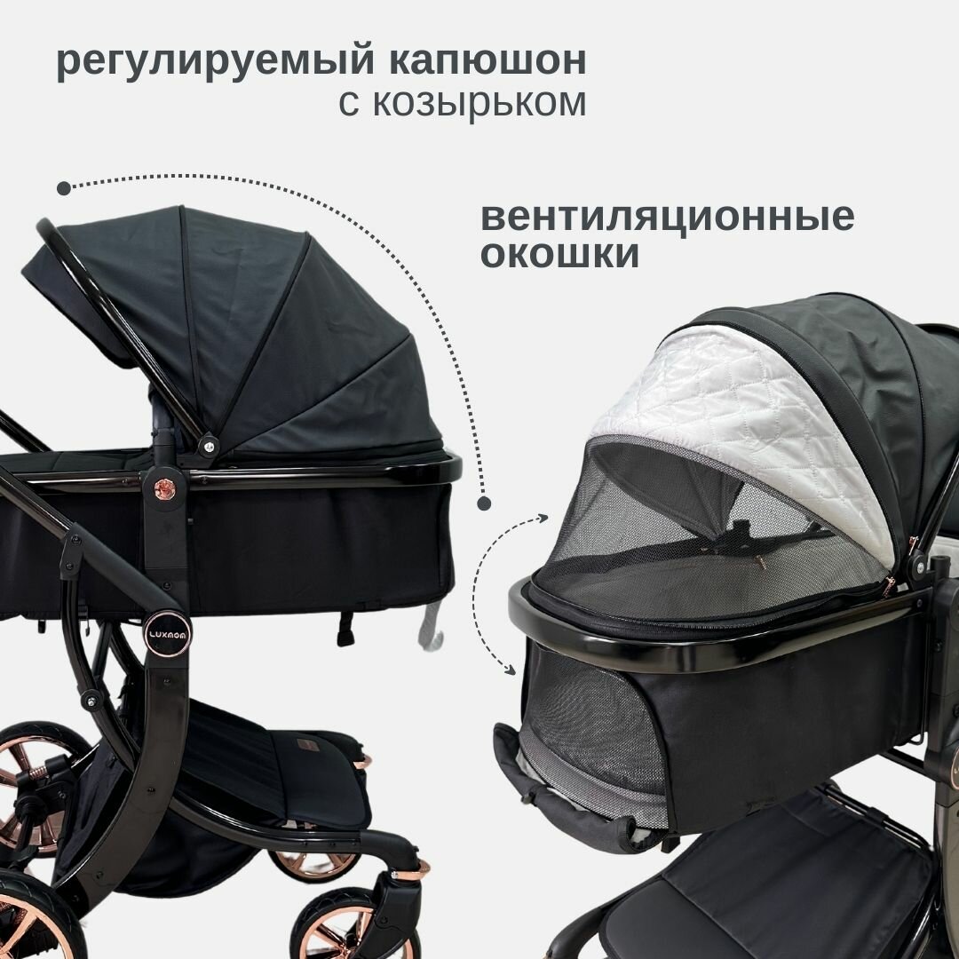 Коляска-универсальная детская Luxmom 711 3в1 с Автокреслом с рождения и до 3х лет, черная