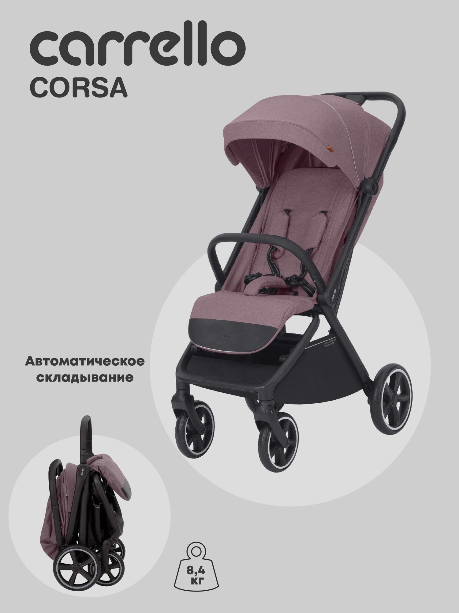 Коляска прогулочная с автоматическим складыванием Carrello Corsa, розовая информация: