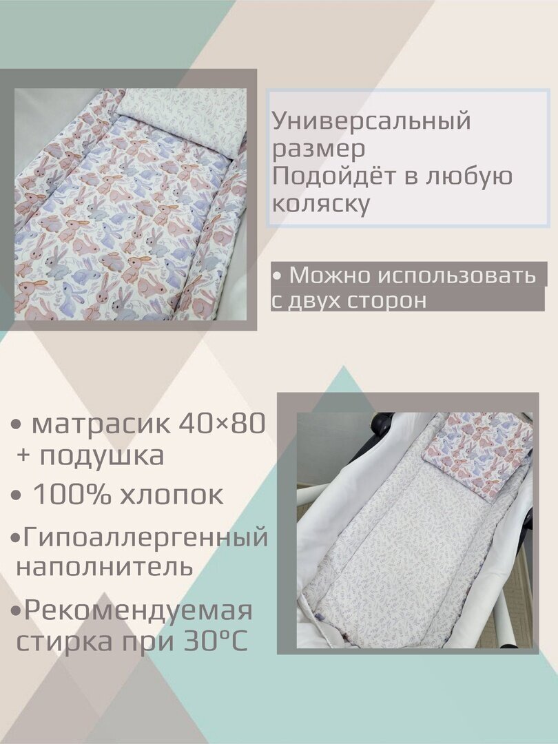 Комплект в коляску "Матрас зайцы,белки.лисы"